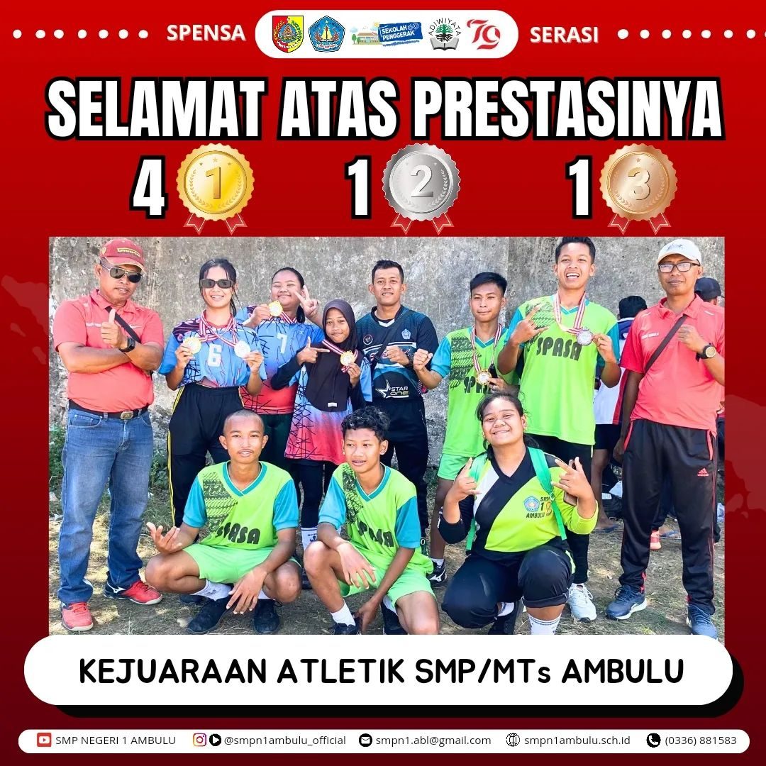 Info Sekolah Harumnya Nama SMPN 1 Ambulu di Ajang Olahraga HUT RI 79 Pada perayaan HUT RI tingkat Kecamatan Ambulu, tim atletik SMPN 1 ... September 6, 2024