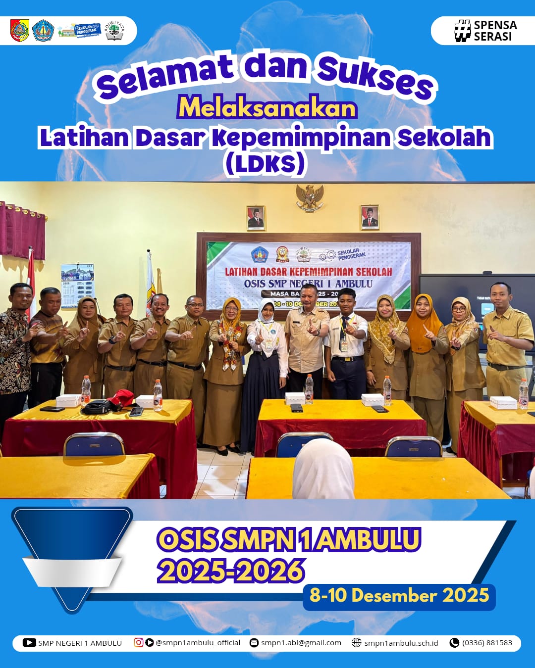 🔥 Latihan Dasar Kepemimpinan Sekolah (LDKS) OSIS SMPN 1 Ambulu 2025–2026 🔥 Tiga hari penuh belajar, berlatih, dan tumbuh bersama. Sebuah proses yang membentuk karakter—bukan hanya menjadi pemimpin, tapi menjadi teladan bagi sesama. Selamat kepada seluruh peserta LDKS! Langkahkan kaki dengan percaya diri, karena masa depan OSIS ada di tangan kalian. 💙✨ #SpensaSerasi #LDKS2025 #OSISSMPN1Ambulu #PemimpinMuda #SekolahPenggerak #Ambulu #Jembe