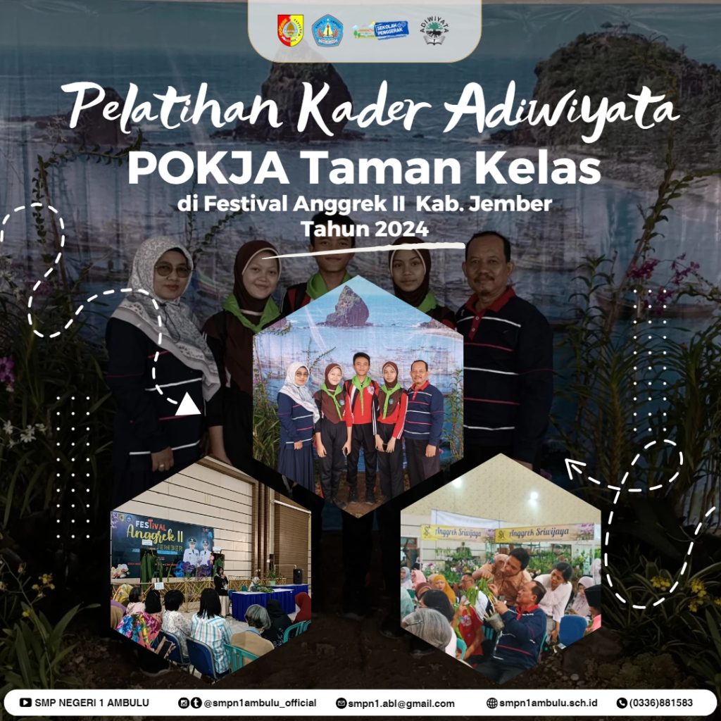 Sejalan dengan persiapan penilaian Calon Sekolah Adiwiyata Provinsi, perwakilan kader dan Guru Pembina Pokja Adiwiyata SMPN 1 Ambulu menghadiri pelatihan di Festival Anggrek II 2024.